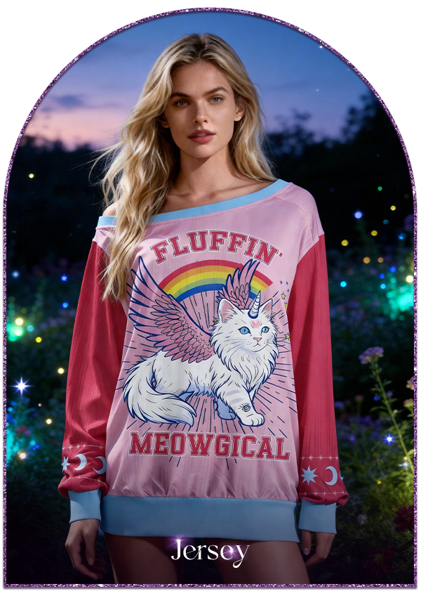 Purplehecate Fluffin Meowgical Off The Shoulder Graphic Jersey