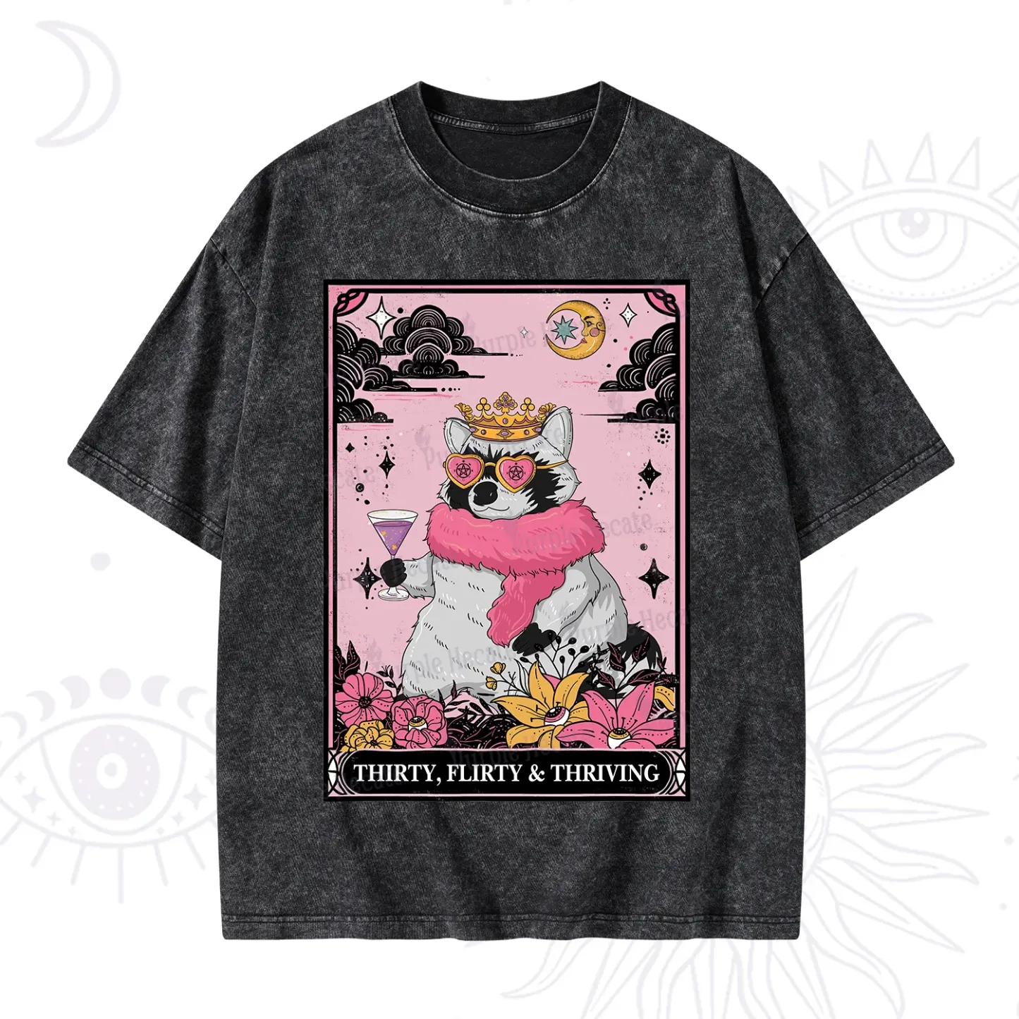 Purplehecate The Thirty Flirty Thriving Oracle Card Washed T-Shirt